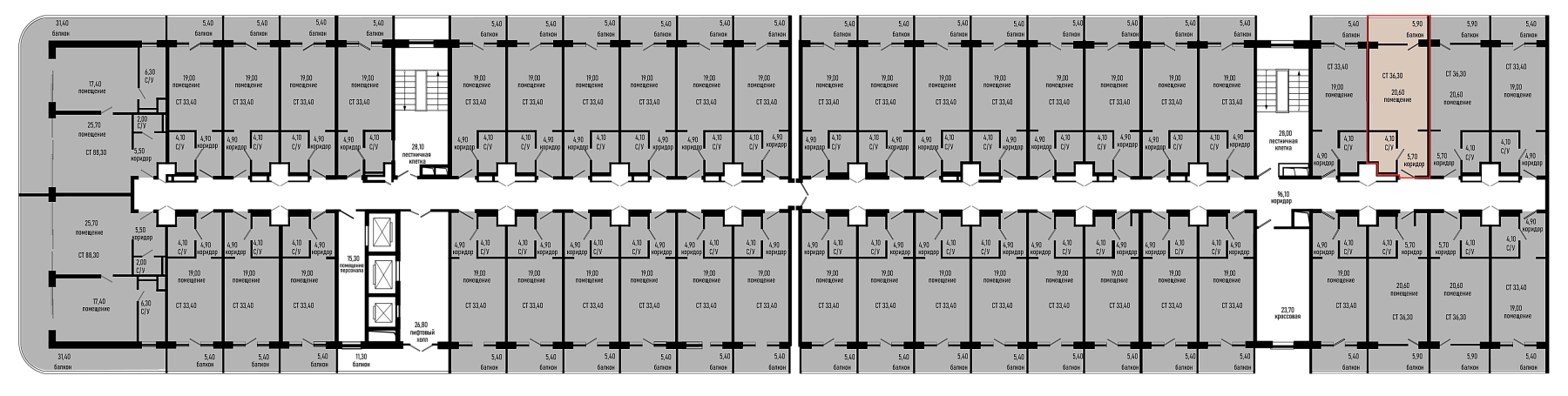 Квартира этаж 6, площадь 36.30 м2