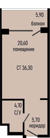 Общая площадь: 36.30м2