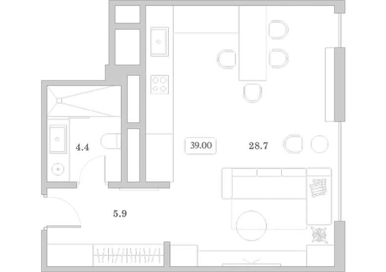 Общая площадь: 39.00м2