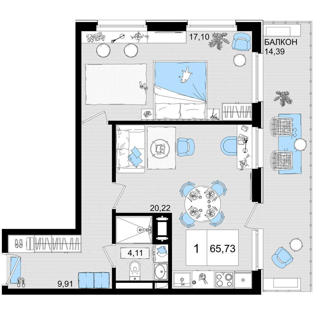 Квартира этаж 5, площадь 64.10 м2