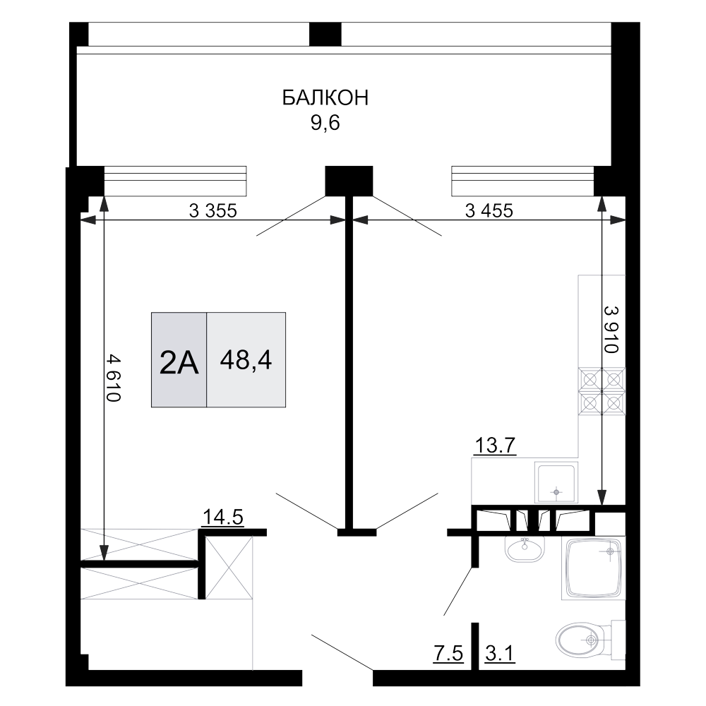 Общая площадь: 48.40м2