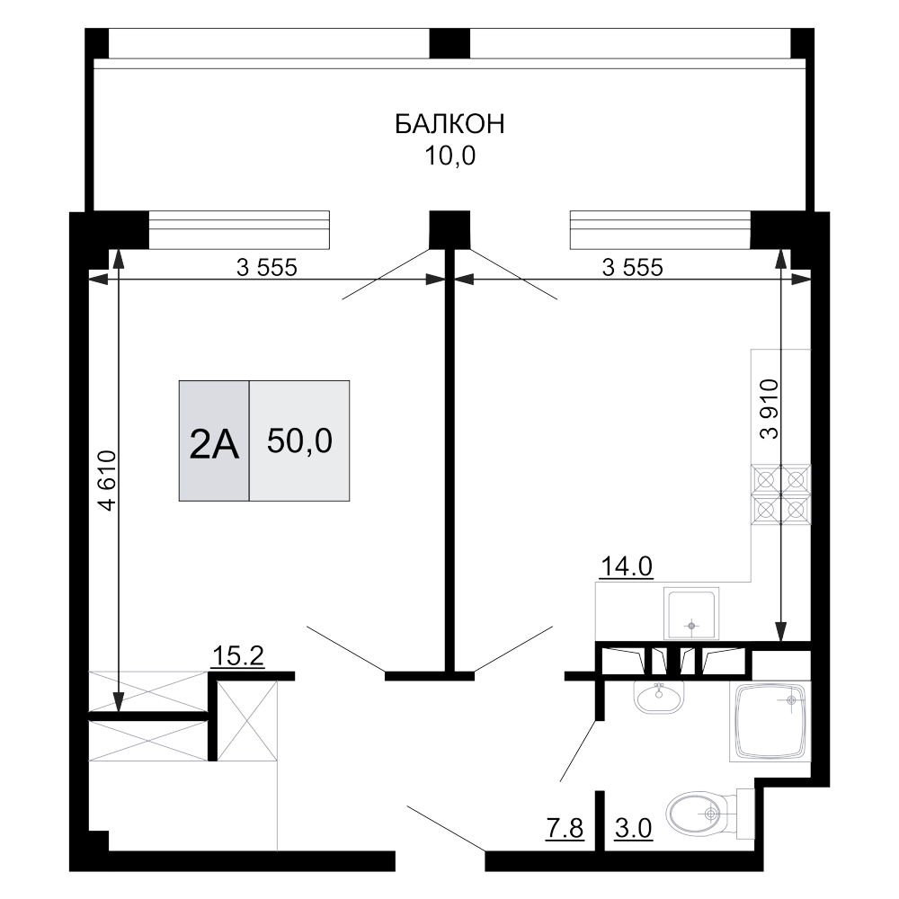 Общая площадь: 50.00м2