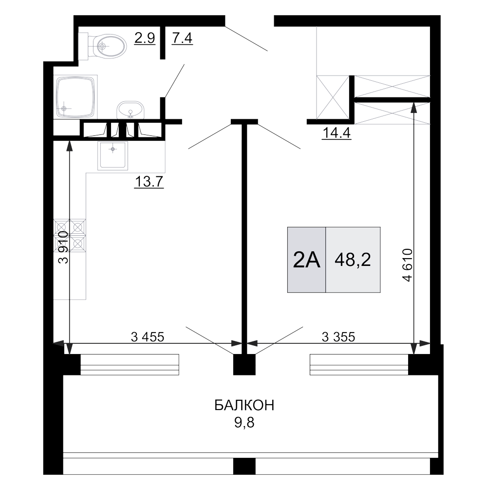 Общая площадь: 48.20м2