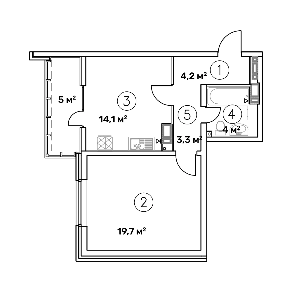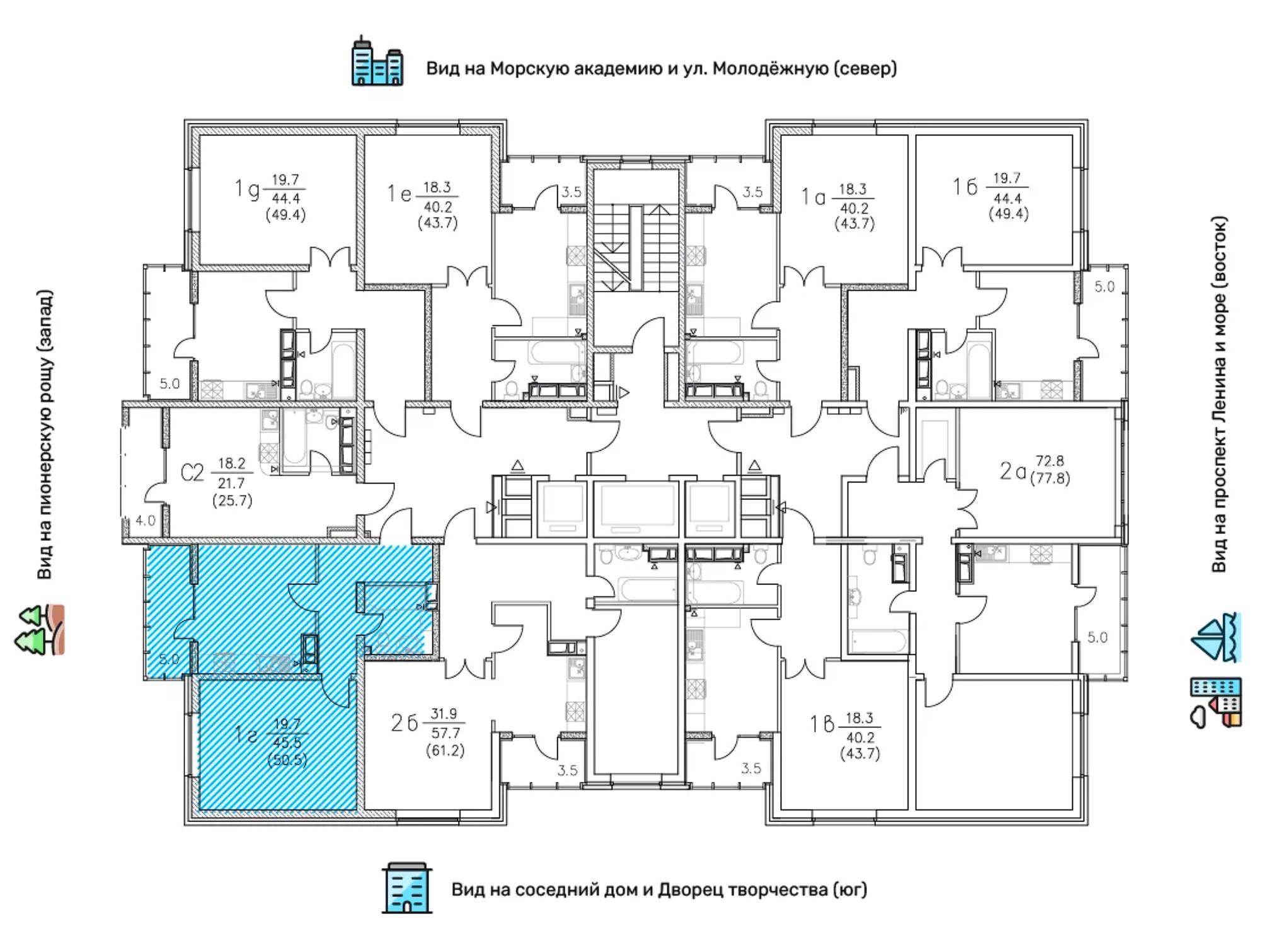 Общая площадь: 50.50м2