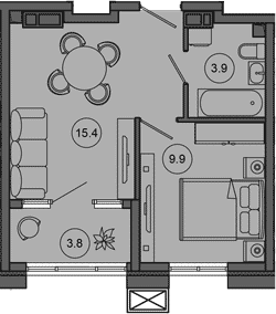 Квартира этаж 2, площадь 33.00 м2