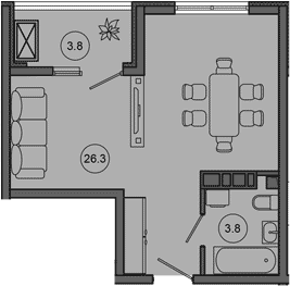 Квартира этаж 3, площадь 33.90 м2