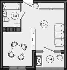 Квартира этаж 4, площадь 32.60 м2