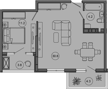 Квартира этаж 9, площадь 54.10 м2