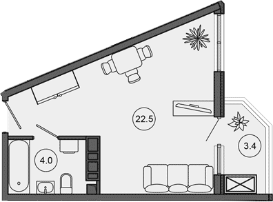 Квартира этаж 6, площадь 29.90 м2