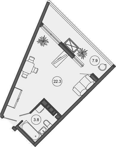 Квартира этаж 10, площадь 34.00 м2