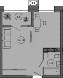 Общая площадь: 35.10м2