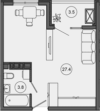 Квартира этаж 4, площадь 34.70 м2