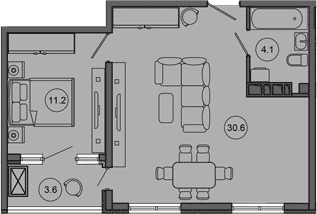 Общая площадь: 49.50м2