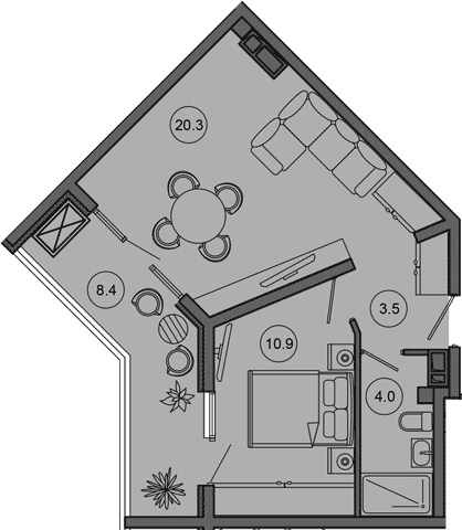 Квартира этаж 7, площадь 47.10 м2