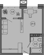 Квартира этаж 2, площадь 35.10 м2