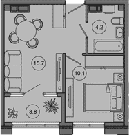 Квартира этаж 2, площадь 33.80 м2
