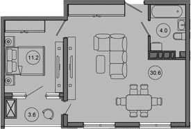Квартира этаж 2, площадь 49.40 м2