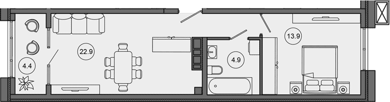 Общая площадь: 46.10м2