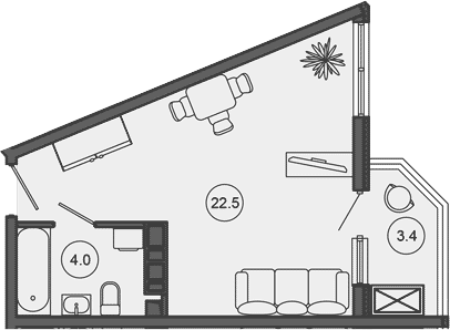 Квартира этаж 4, площадь 29.90 м2