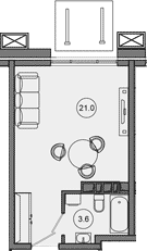 Квартира этаж 2, площадь 24.60 м2