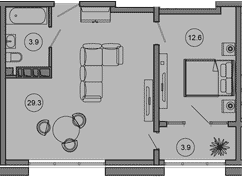 Общая площадь: 49.60м2