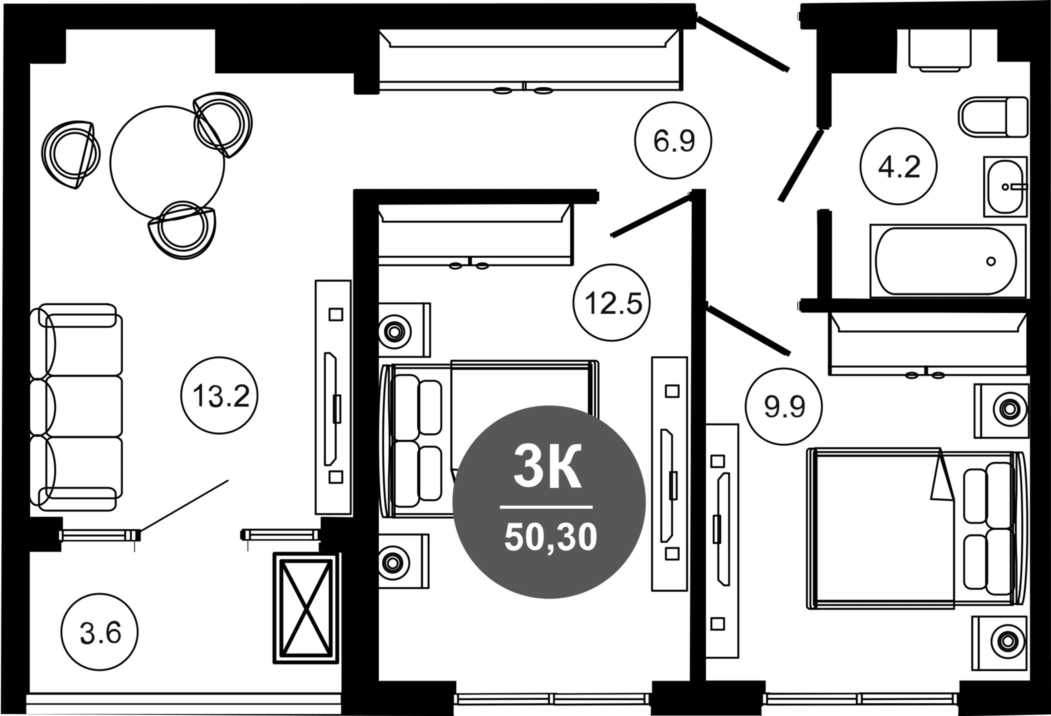Общая площадь: 50.30м2