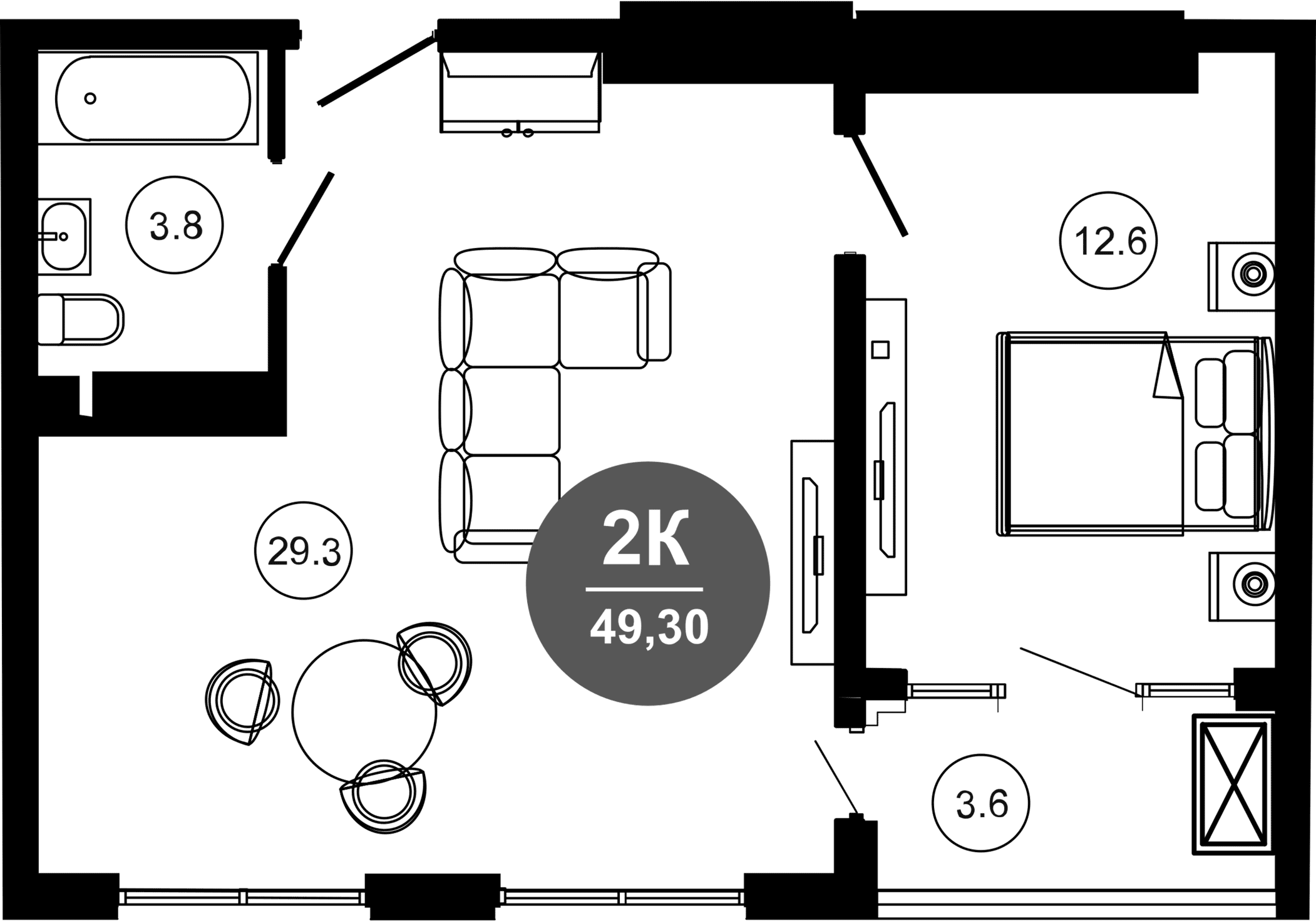 Общая площадь: 49.30м2