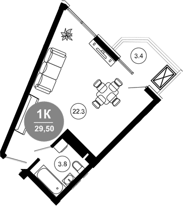 Общая площадь: 29.50м2
