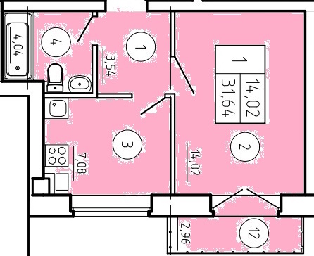 Общая площадь: 36.64м2