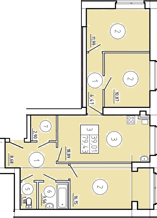 Общая площадь: 79.43м2