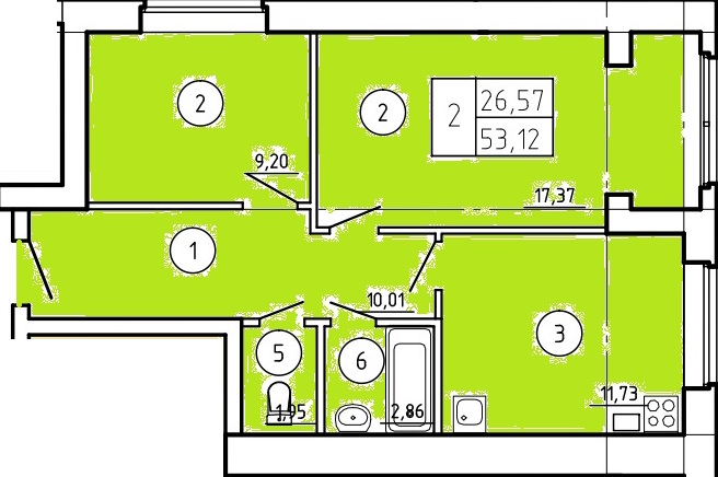 Общая площадь: 53.12м2