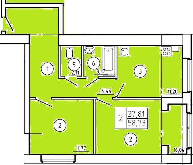 Общая площадь: 58.73м2