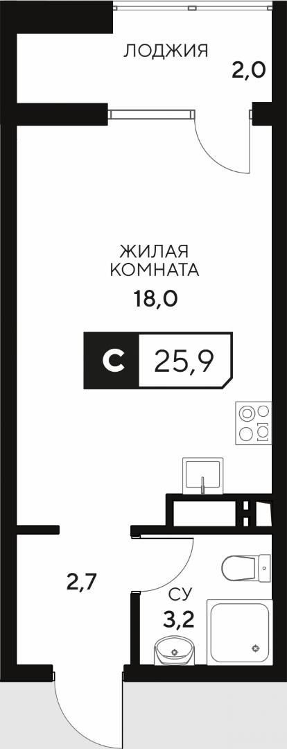 Общая площадь: 26.10м2