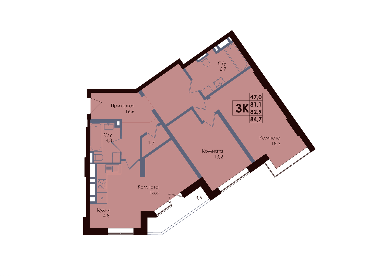 Общая площадь: 82.90м2
