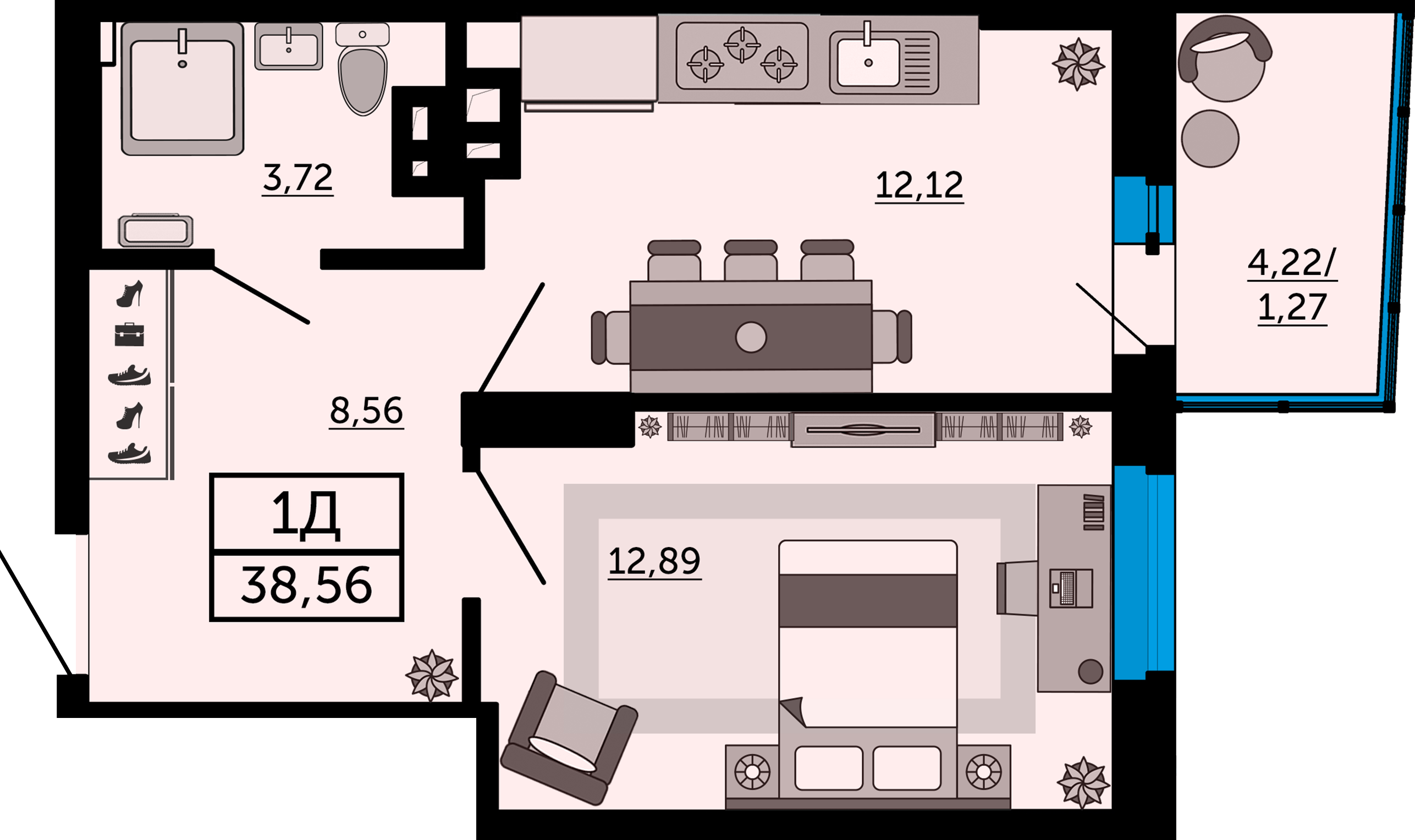 Общая площадь: 38.27м2