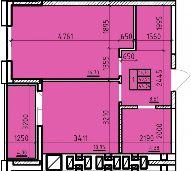 Общая площадь: 44.54м2