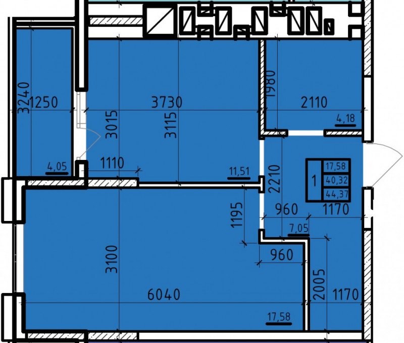 Общая площадь: 44.37м2