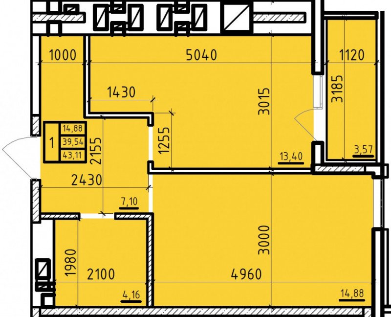 Квартира этаж 7, площадь 43.11 м2