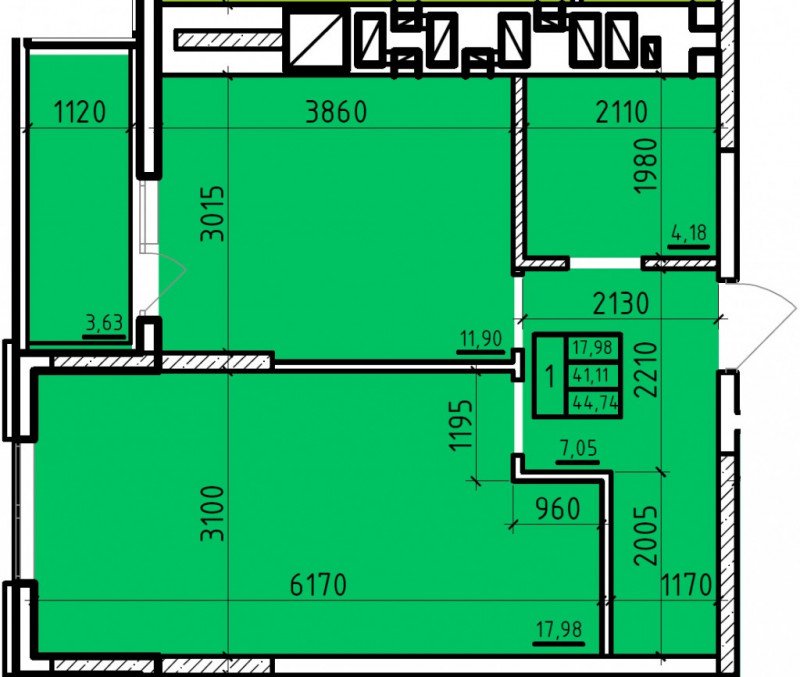 Общая площадь: 44.74м2