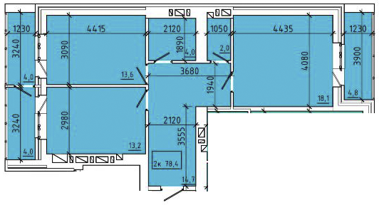 Общая площадь: 78.40м2