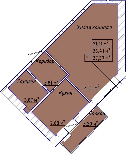 Общая площадь: 37.66м2