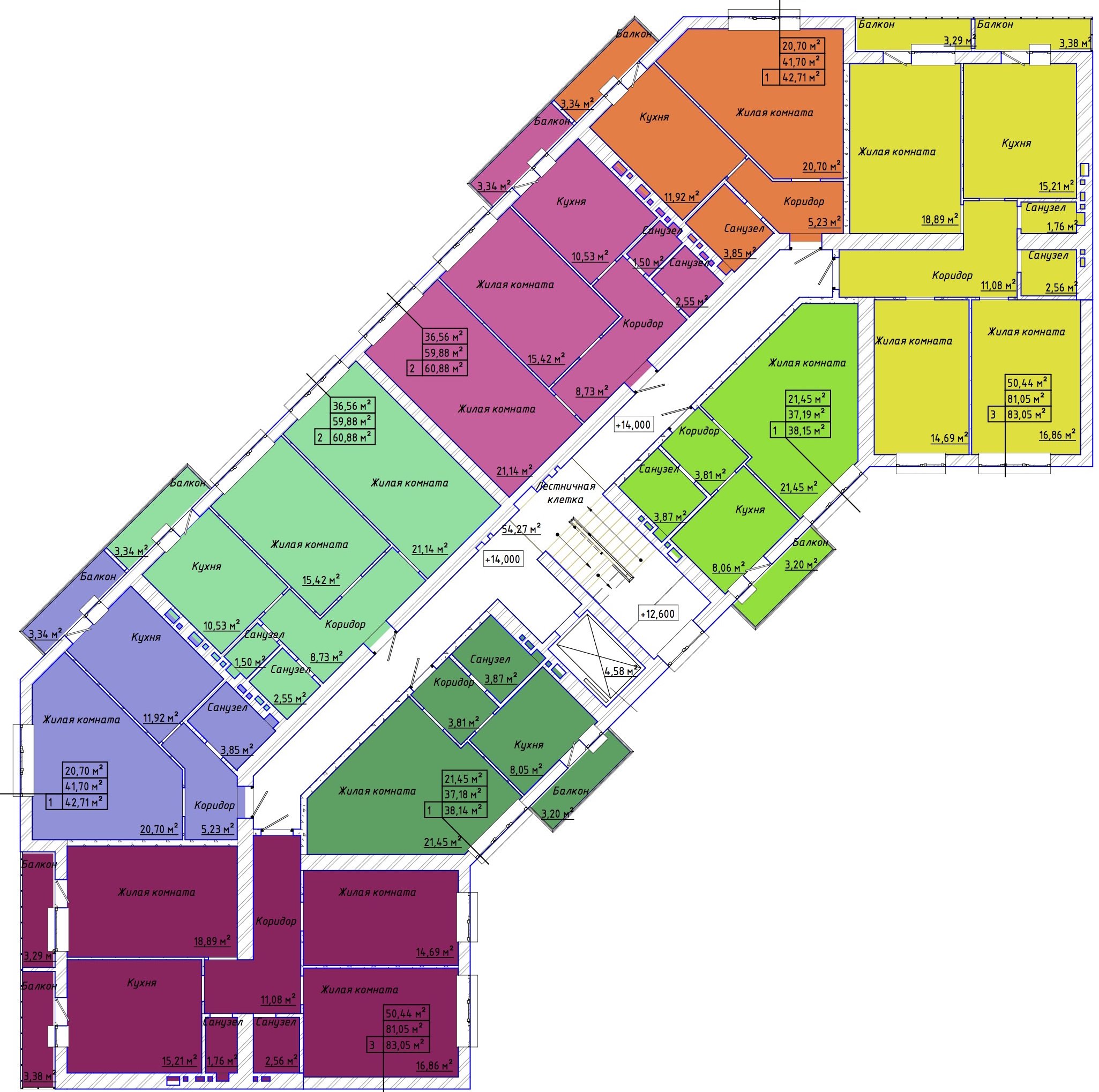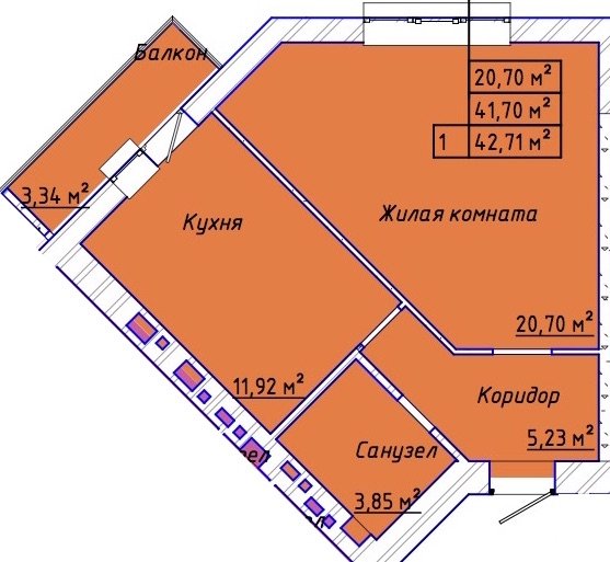 Общая площадь: 42.20м2