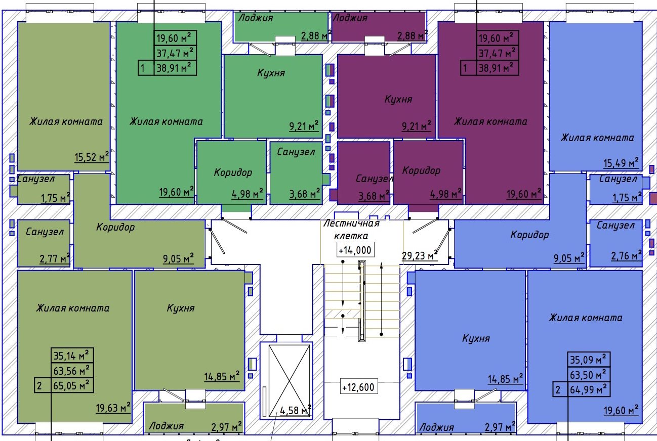 Квартира этаж 9, площадь 65.00 м2