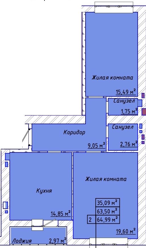 Общая площадь: 65.00м2