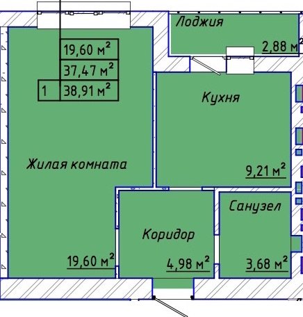 Общая площадь: 39.25м2