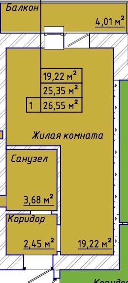 Квартира этаж 1, площадь 26.80 м2
