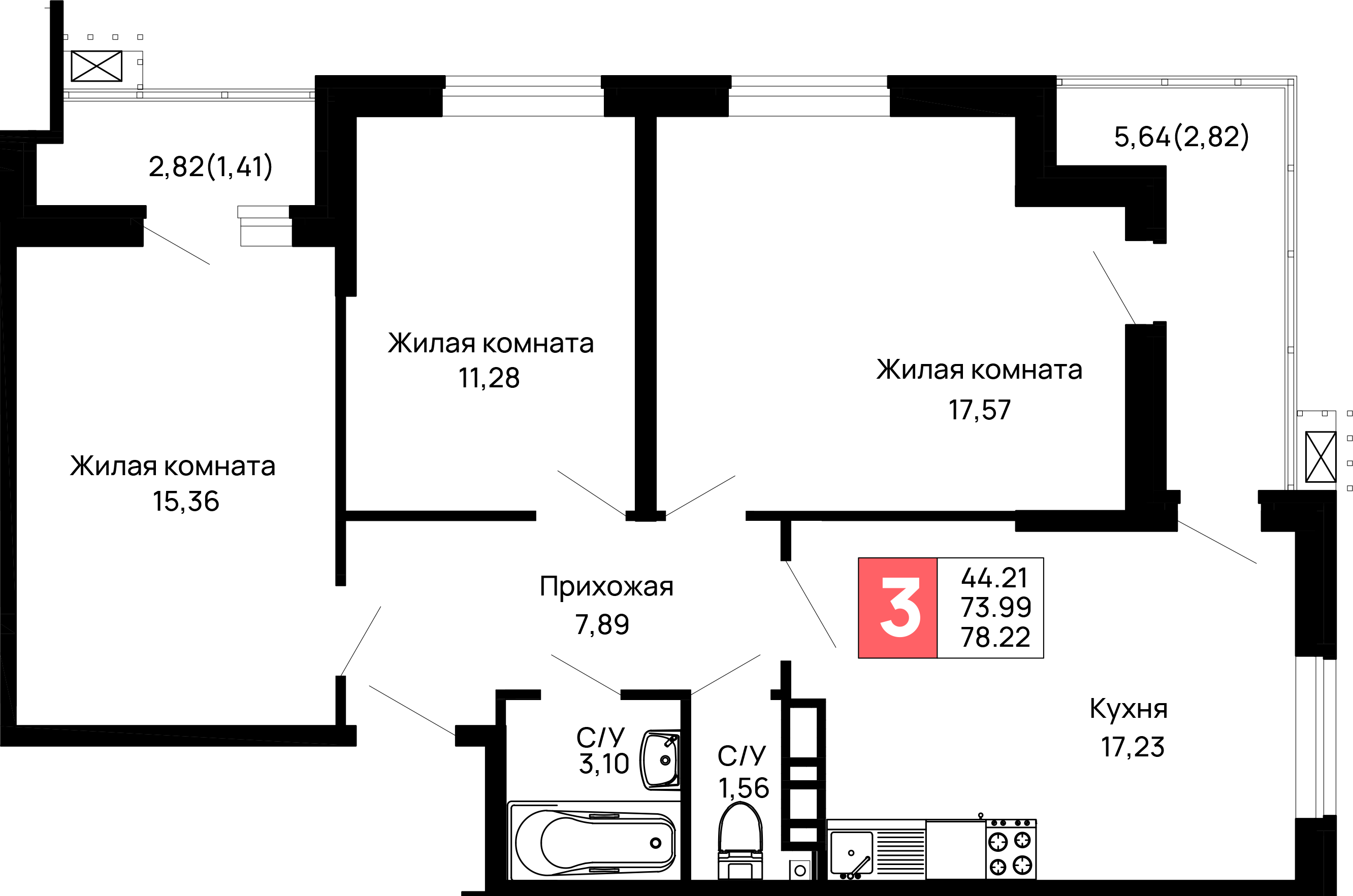 Общая площадь: 78.22м2