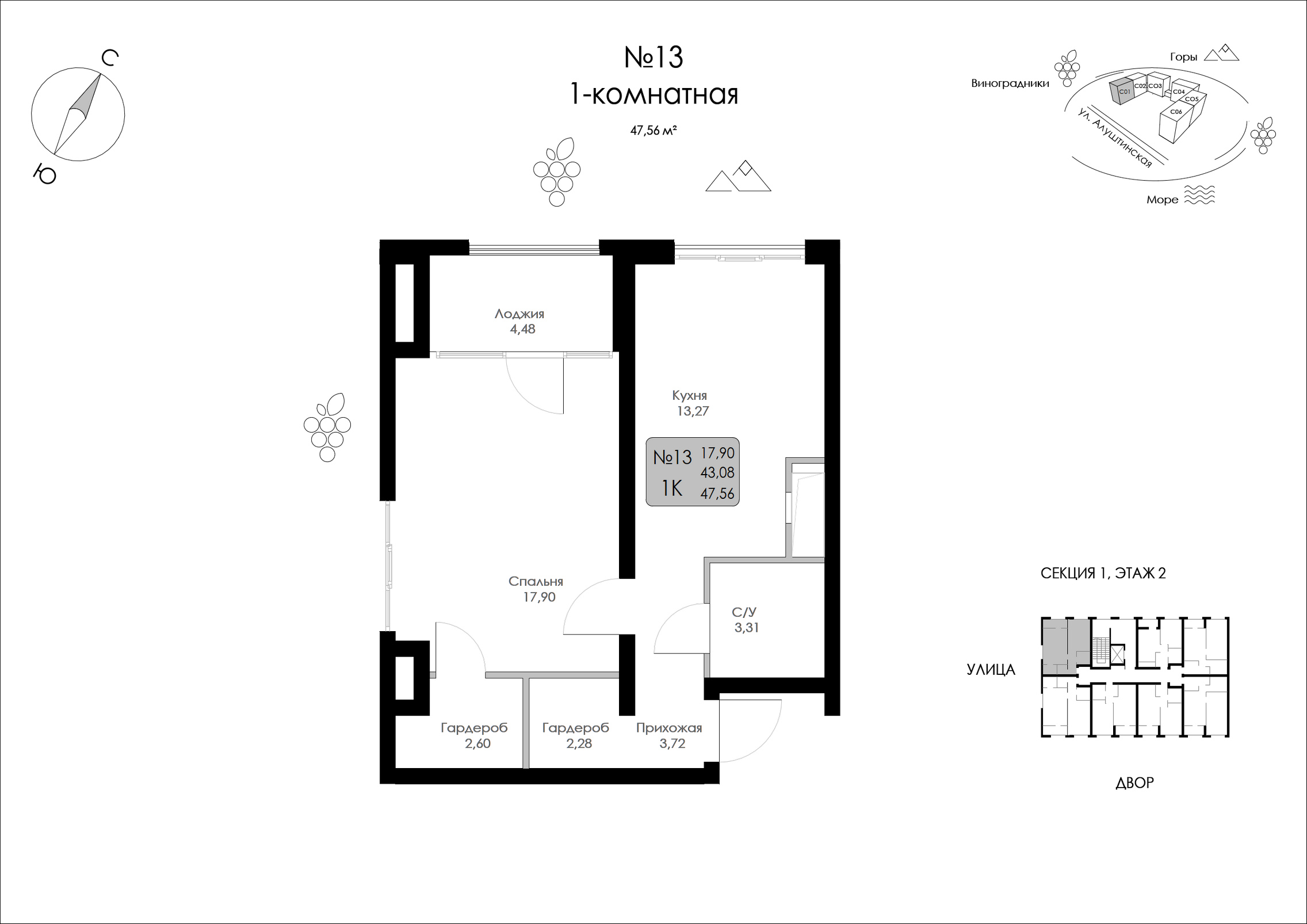 Общая площадь: 47.56м2