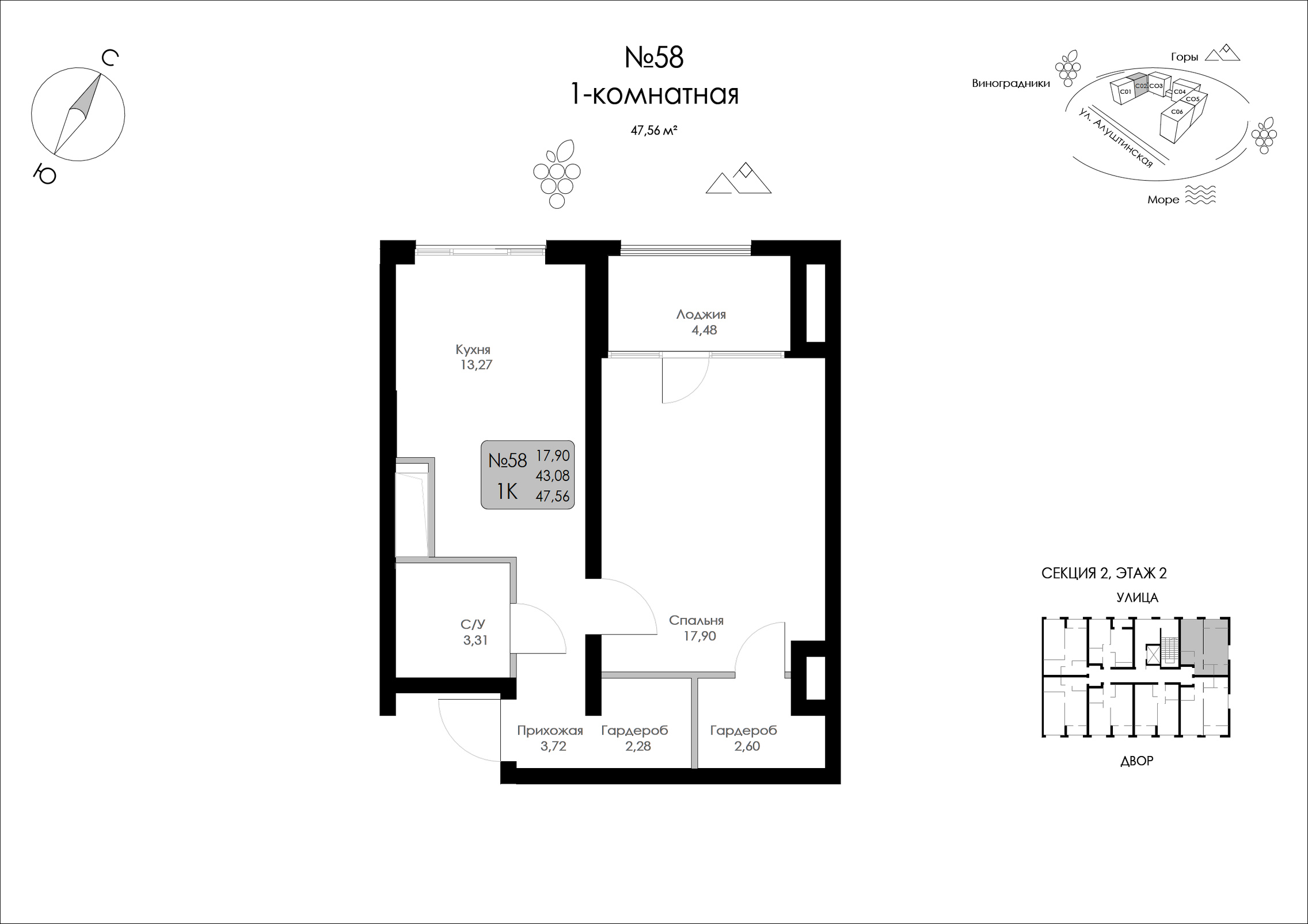 Общая площадь: 47.56м2