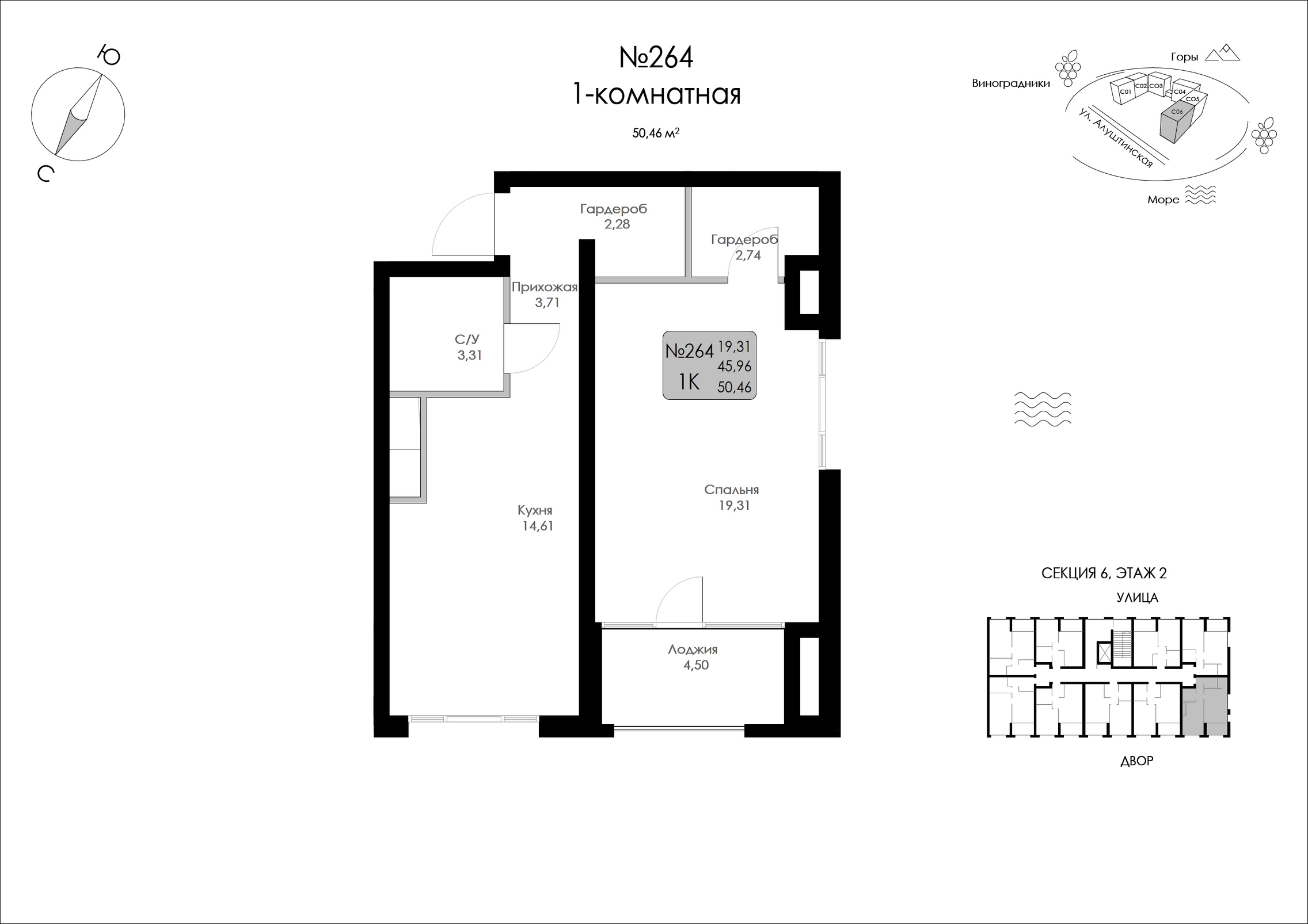 Общая площадь: 50.46м2
